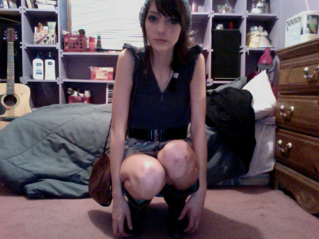 I just like this picture. My floral tights, yellow clasp chain purse, boots, and off the shoulder top.